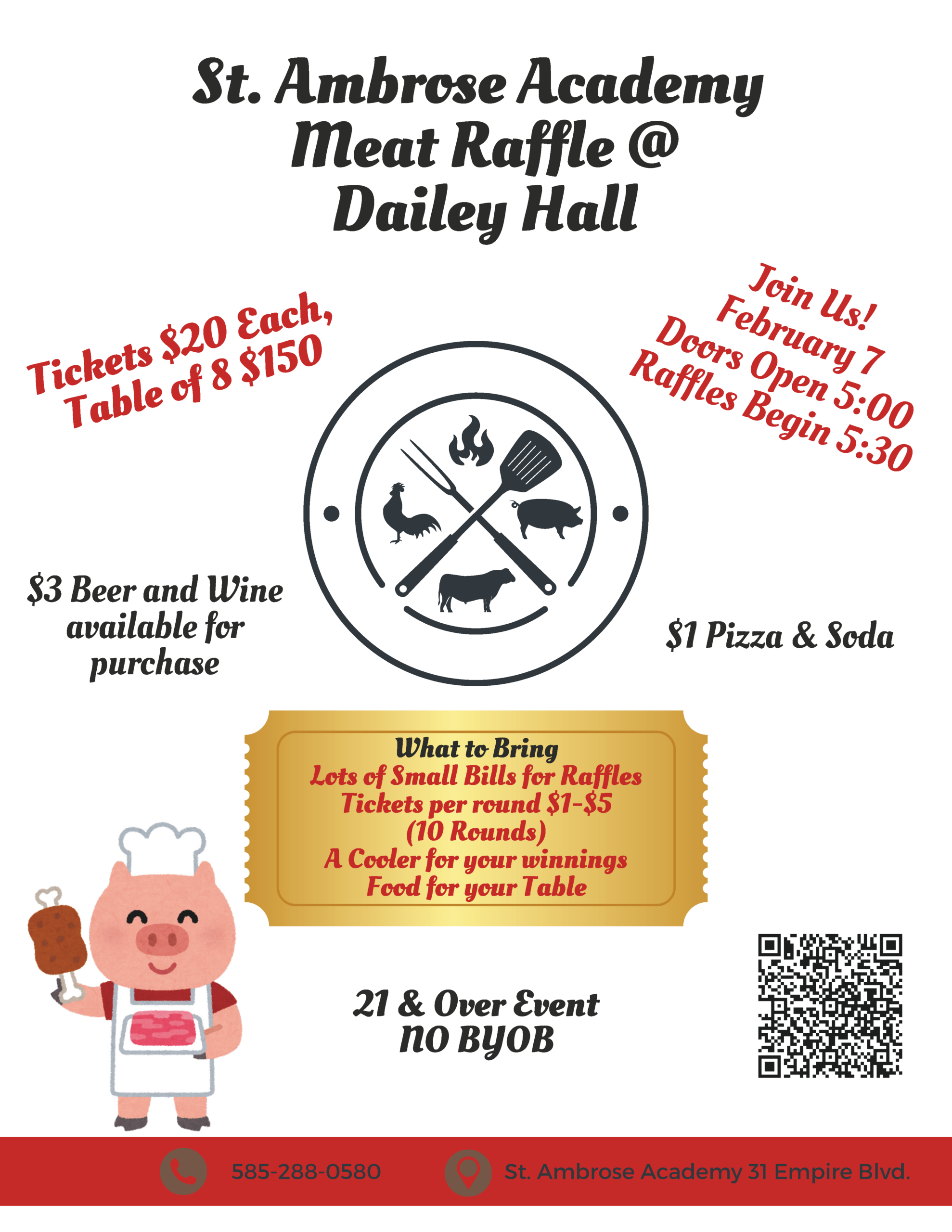 Come and enjoy the festivities on Saturday, February 7th, doors open at 5:00 PM and the first raffle starts at 5:30. Tickets are $20/person or $150 for a table of 8.